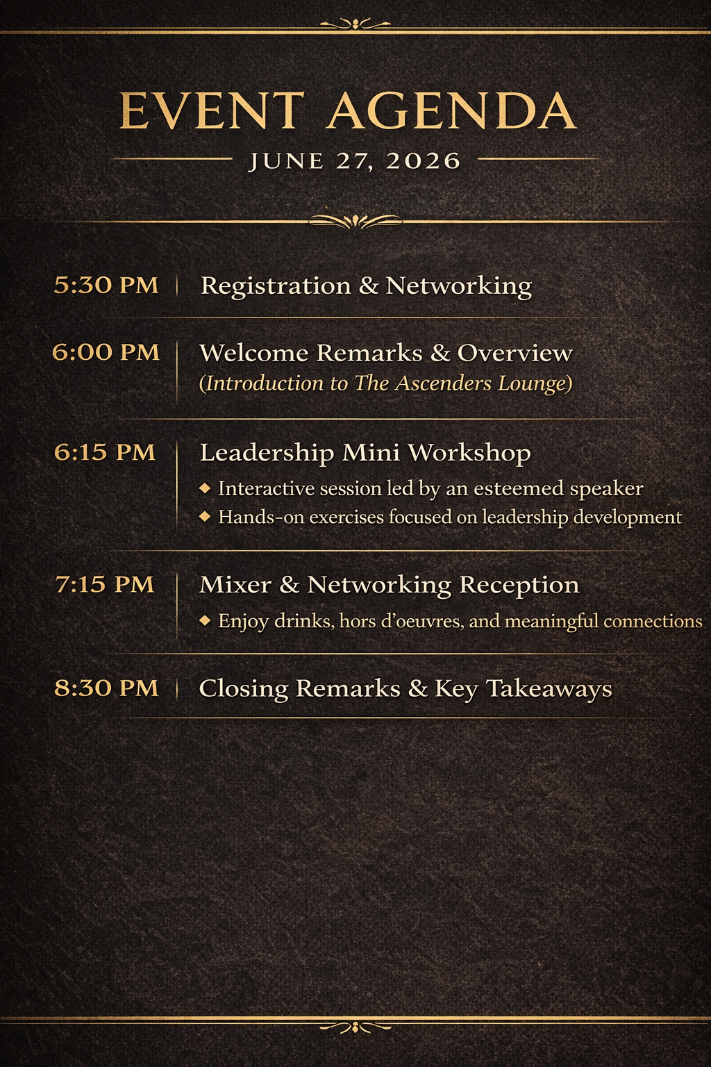 Ascenders Lounge™ is an intentional leadership experience not a traditional networking event designed to help women pause, reflect, and recalibrate before their next bold move.